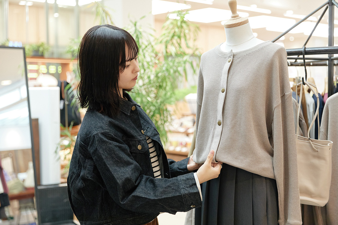 接客では、お客様と楽しくお話をしながらニーズに合った商品を提案できたり、セットでコーディネートを組めたりしたとき、またレイアウトを変更して商品が多く売れたときには、大きなやりがいを感じます。