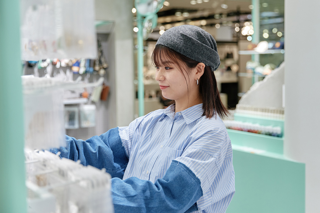 日々の売上や動向を確認しながら、どの商品をどのように打ち出すかを考え、スタッフと一緒に売り場を作っています。また、季節やイベントに合わせてレイアウトを変えたり、お客様が見やすく、手に取りやすい売り場づくりを意識しています。