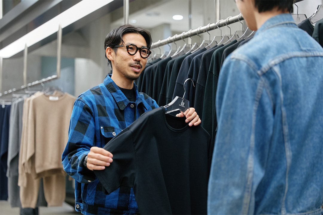 また、スタッフ一人ひとりが自信を持って働けるよう、人材育成や後輩のサポートにも力を入れています。ファッション面のアドバイスはもちろん、日々のコミュニケーションを大切に、どんなことでも気軽に相談できる関係づくりを心がけています。